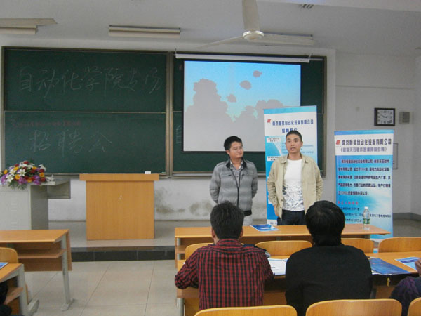 2012年10月25日和26日,金智科技有限公司和南京恒星自动化设备有限公司分别在教3-506和教4-415举办了自动化学院专场招聘会。此次活动得到了学院党委和分团委的大力支持,院党委副书记高志华,分团委书记叶晓勤和2009级辅导员赵梓竹均出席了专场招聘会。