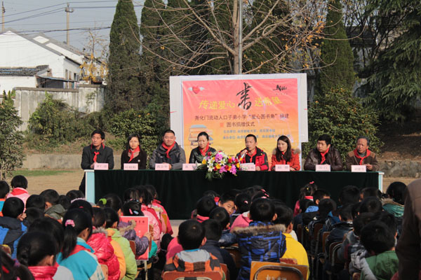2012年11月29日下午,在12·5国际志愿者日来临之际,由南京邮电大学和南京图书馆主办、南京邮电大学爱心社和南京图书馆团委承办的 “爱心图书角”捐建暨图书捐赠仪式在尧化门流动人口子弟小学举行。南京邮电大学团委副书记张敏、自动化学院党委副书记高志华、自动化学院分团委书记叶晓勤和南京图书馆读者服务部主任朱志伟、南京图书馆团委副书记赵曾以及尧化门流动人口子弟小学校长胡德宝和教导主任黄仁进出席了本次仪式。