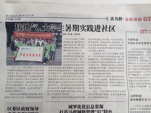 为深入学习宣传贯彻党的十八届三中全会精神、习近平总书记系列重要讲话和在北京大学师生座谈会上的讲话精神,组织引导广大青年学生在深入社会、了解国情、接受锻炼的过程中培育和践行社会主义核心价值观,牢固树立跟党走中国特色社会主义道路、为实现中国梦努力奋斗的理想信念,自动化学院组织了大学生社区主任助理挂职锻炼服务团队走进南京市栖霞区马群街道,从77日到714日,开展了以“科技走进社区,实践感悟真知”为主题的暑期社会实践活动。团队成员们走进基层,不仅协助社区主任开展日常工作,而且开展了企业调研、科技进社区、青奥文化宣传、慰问独居老人等一系列主题活动。