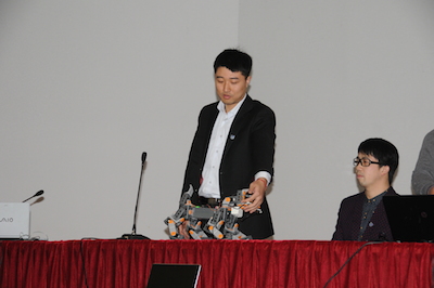 下午两点,伴随着南京邮电大学宣传片的播放,2014年新海高级中学科技节南邮专场拉开帷幕。首先,由丁静书记介绍了我校的人才培养、学科建设等发展近况,并感谢新海高级中学为我校输送的优秀人才,他们进入南邮后,学习勤奋,刻苦钻研,素质发展全面。随后,梁志伟副教授以“揭开RoboCup机器人的神秘面纱”为题,开始了专题讲座,讲座中提到了我校Apollo团队多次获得世界冠军、中国冠军的骄人成绩并为中学生介绍了RoboCup机器人大赛的组别和规则。最后,由基地4名学生为大家演示了机器狗、TurtleBot以及在我校第十六届创新杯中刚刚夺得一等奖的“服务残疾人的Kinect体感遥控机器”。