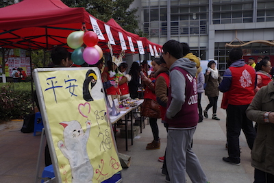 2014年12月15日星期一,南邮爱心社在南二广场举办了平安阿福义卖活动。本次活动由南邮爱心社承办,义卖品由平安阿福提供,面对全校学生开展,希望同学们通过购买义卖品的形式踊跃奉献爱心。