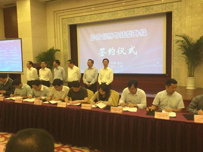 会上,张志华副校长代表我校与昆山市市委常委、组织部部长周伟签订了产学研全面合作协议、交换了协议文本,高翔副院长与昆山同日工业自动化有限公司负责人签订了校企合作协议书。会议期间,双方就如何充分发挥我校人才、科技资源优势,进一步深入推进我校与昆山市在科研成果转化、创新载体建设、高层次人才培养等方面多形式、多层面合作进行了广泛交流,并形成了共识。