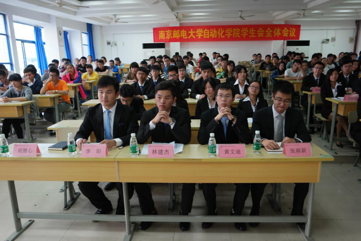 2015年10月17日下午,南京邮电大学自动化学院2015级学生会第一次全体会议在教3-101举行。出席本次大会的有自动化学院学生会主席团、全体中干以及2015级全体新成员。会议由胡雅心主席主持。