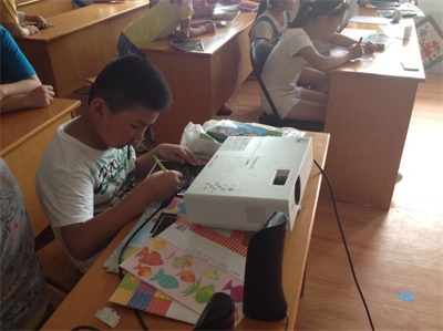 小朋友正在专心画画