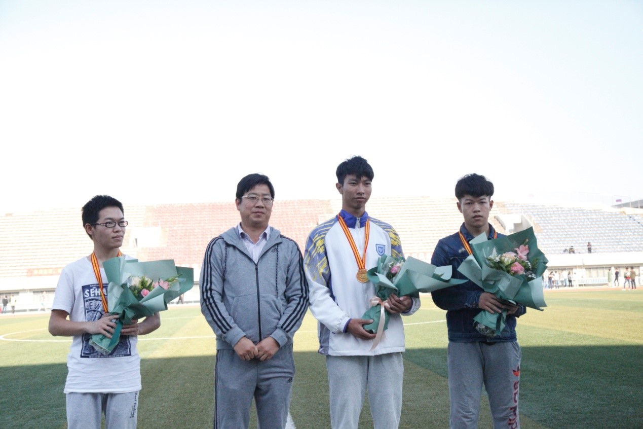 杜月林书记为男子100米前三名颁奖并合影