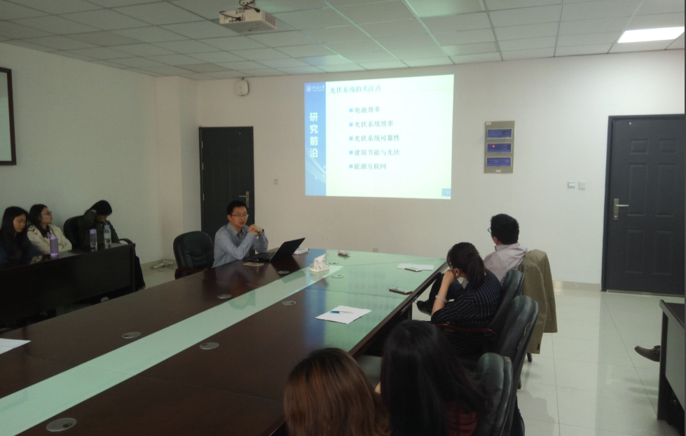 报告中,丁坤教授首先介绍了光伏发电系统的研究背景和问题定义。系统介绍了各类组件太阳能光伏发电系统的效率、影响太阳能系统发电的关键因数;讨论了光伏建筑微网的架构及其关键技术问题。报告结束后,丁老师同与会教师和研究生围绕太阳能功率预测、建模方法等最新进展进行了深入讨论和互动。
