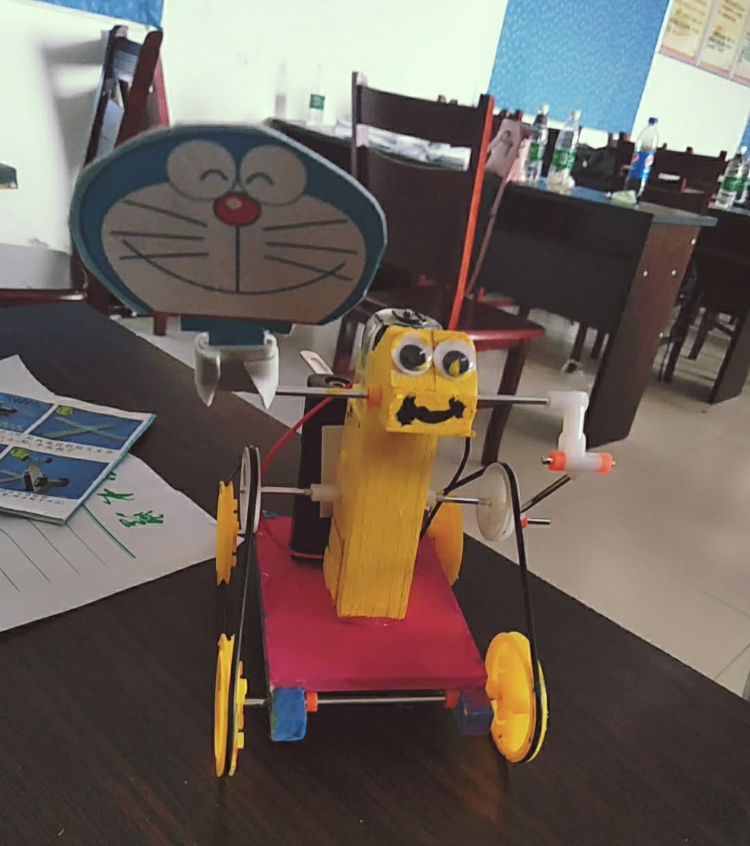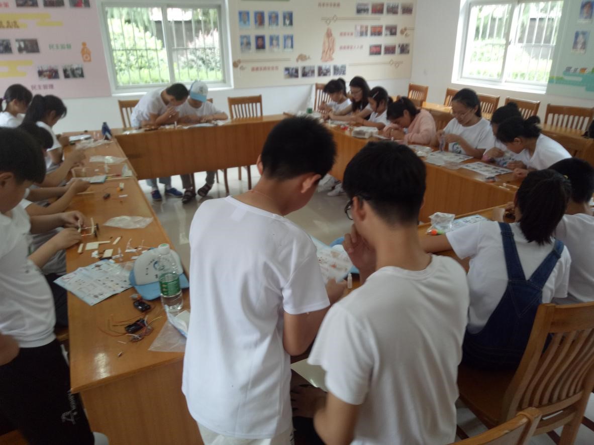 下午,实践队员们带领小朋友进行了各种简易机器人的组装。独立搭建一个机器人对于小朋友们来说是一件比较困难的事,但是在实践队员的耐心帮助下,小朋友们如愿搭建好了简易机器人,并且实现了预想的功能,他们都特别欢喜,十分有成就感。作品完成后,小朋友们为自己的作品涂上了颜料。在这一次次成功实践的过程中,小朋友们体会到了动手实践的艰辛和意义,这对他们的人生发展具有极其重要的意义,也锻炼了他们的意志、韧性。