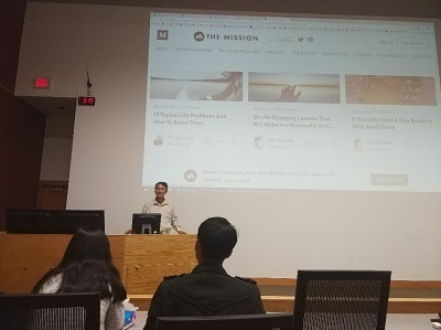 在课堂上,他们还有一些很特别的习惯,如做Hi-five,也就是站起身,将两手尽可能举高,与身边的伙伴进行击掌,这样能使精神更加集中,提高效率。而在课堂结尾时,教授总是强调让学生进行meditation,就是沉思冥想,进行深呼吸,让大脑放空,在放松大脑的同时,更加关注自身这个个体,这样会让同学们更接纳自己,变得沉稳,具有领导能力。
