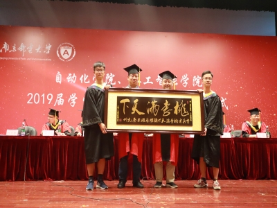 岳院长介绍了2019届毕业生的整体状况,同时提出修得、勤学、创新与毕业生们共勉,愿毕业生们做一个品德高尚的青年人,做一个与时俱进的南邮人,做一个志存高远的自动化人。