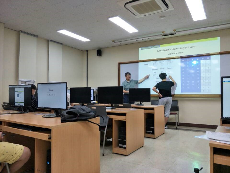 7月15日,老师和同学们参加了开学典礼,典礼结束后开始了在汉阳大学的学习生活。在中国留学生郑杰傔(Jason)学长的带领下,大家游览学校,了解学校概况以及优势学科,最后大家来到上课地点见到了老师。本次课程由来自计算机学院的都敬九教授为大家讲解,在授课之前,教授也介绍了自己平时的课堂要求以及提前规划好的教学大纲,并且耐心地询问大家对课程的期待,在不影响教学的前提下,为我们提供了更好的课程安排。简短的交流中也体现出汉阳大学严谨细致的校风。