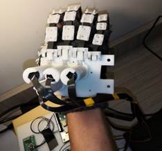 图1:肩-肘-腕外骨骼康复机器人工程样机 图2:手部外骨骼康复机器人工程样机