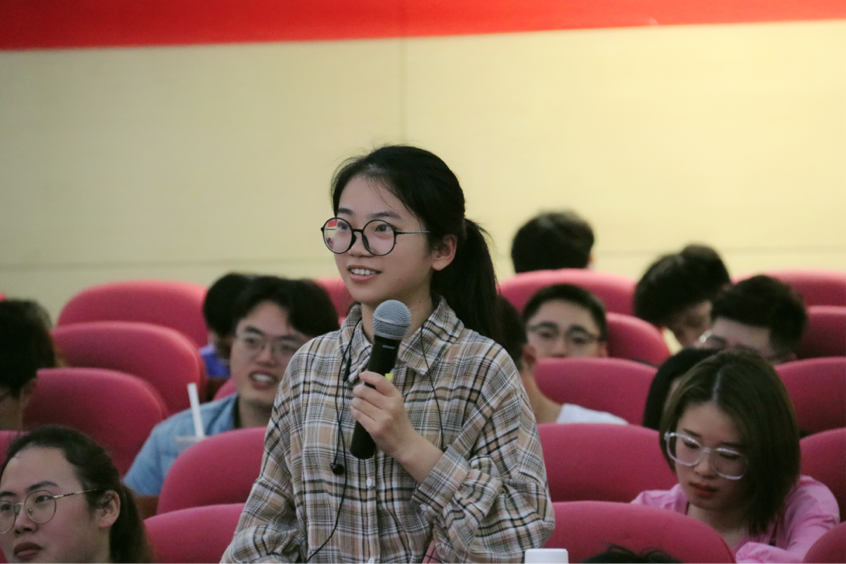 活动中,现场观众踊跃提问。同学们就如何平衡兴趣爱好与学习生活、如何作合理规划实现自己的目标、注重培养哪方面的能力以适应未来工作等方面问题向张丹校友提问请教,张丹校友逐一进行了深入浅出的耐心解答。