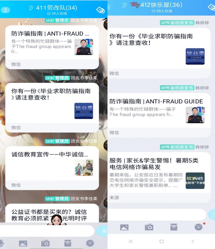 在线上,各位班委通过微信公众号集中给同学们推送了多篇有关专题文章,帮助学生全面了解资助政策,深入理解征信意义,提高金融风险意识,让学生在相对密集的网络阅读中汲取诚信知识,提高诚信认知水平。