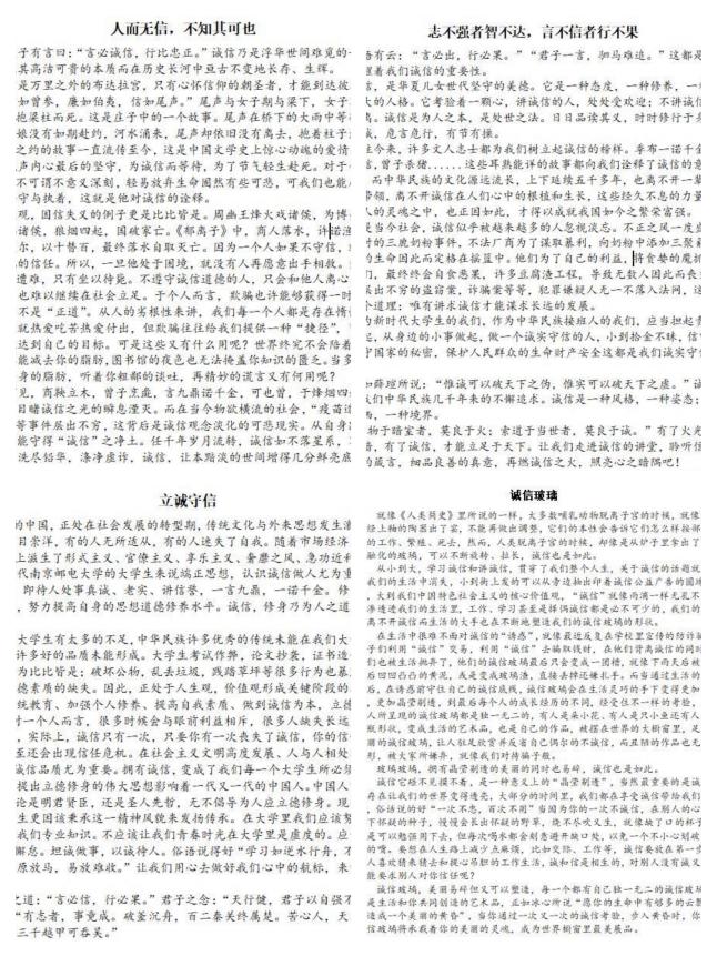 为增强学生的诚信意识和责任意识,提高资助育人成效,激励广大在校学生奋发拼搏,成长成才,英国威廉希尔公司官网于5月17日——5月31日进行了“诚立德,勤修身,柚子信天下”主题征文活动,共收集到近百份征文作品。学生们结合自己的亲身经历,将诚信与母校培养教育联系在一起,既表达了对母校的热爱之情,又升华主题,引起广大学子的共鸣,在校园中扬起诚信之风。