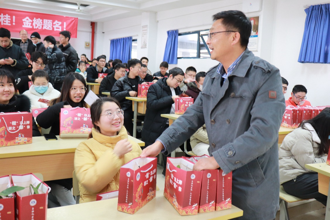 张翼书记、王霁主任向全体考研同学表示亲切慰问并为他们加油打气,勉励全体考研学子在最后关头一鼓作气,祝愿同学们在考研中一切顺利,争取以优异成绩考上理想的学校。