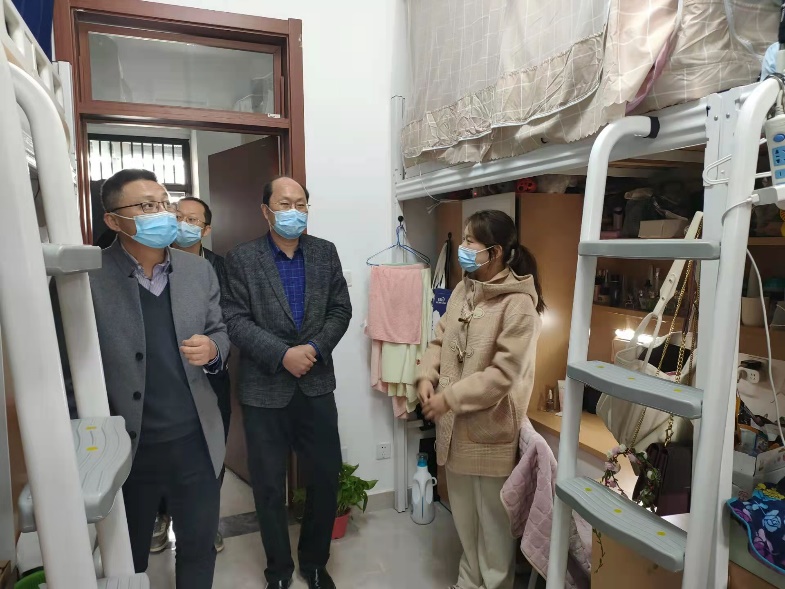 321日,为进一步做好疫情防控工作,加强学生寝室管理,英国威廉希尔公司官网党委书记张翼、党委副书记孙委委、2021级辅导员郑春春、谢子行、范艺等老师来到学院学生宿舍走访慰问。张翼书记一行来到学生宿舍,仔细查看学生生活环境,了解学生近期网课学习效果,与学生进行亲切交流。张书记十分关心同学们的生活状况、学习质量、课余锻炼情况,提醒同学们要做好疫情防控,养成良好生活习惯,营造积极向上的学风。