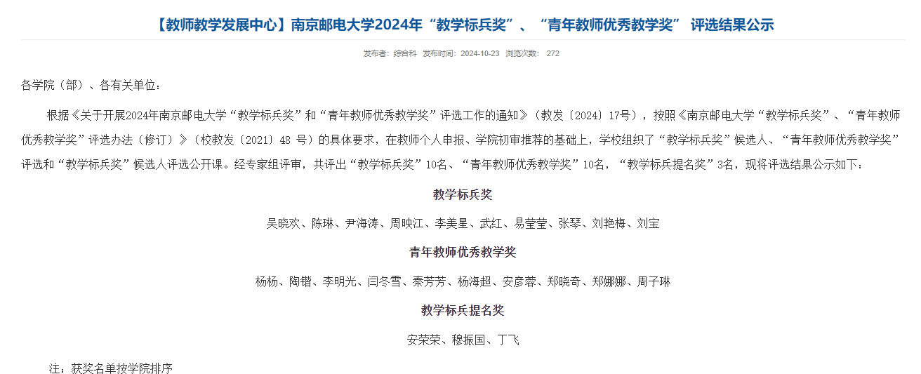 本次四位老师荣获殊荣,不仅体现学校对各位老师长期以来致力于提升教育质量,潜心育人、默默奉献精神的深度认可,更是对他们积极投身教育教学改革与创新工作,不断探索教学与实践教育新路径的充分肯定。同时也是学院持续重视并努力培养教学队伍,不断优化教师成长环境,为教师们提供广阔发展平台的结果。